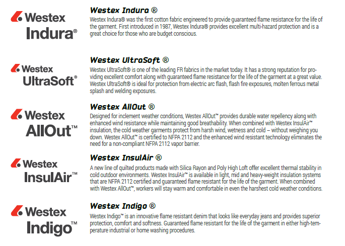 Our FR apparel suppliers, like Saf-Tech, an American manufacturer, comply with the National Fire Protection Association 2112 (NFPA 2112) standard that provides minimum requirements for the design, construction, evaluation, and certification of flame-resistant garments for use by industrial personnel.